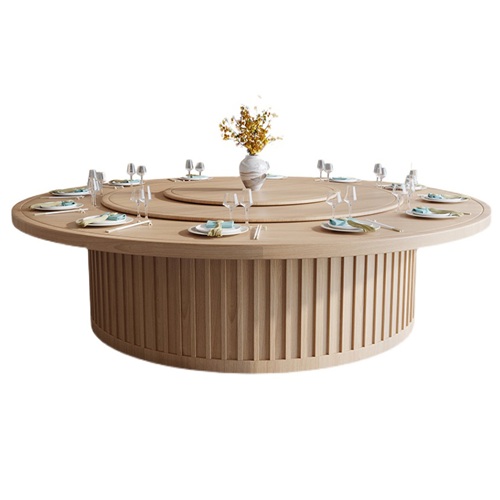 制作,整体框架使用了进口橡胶木制作,木材经过3到烘干工艺,含水率控制在8%-10%,确保多年使用以后不开裂,无裂纹,并且内置盘式机芯,经久耐用无任何噪音,让电动餐桌功能更加丰富,就餐者有更好的就餐体验。