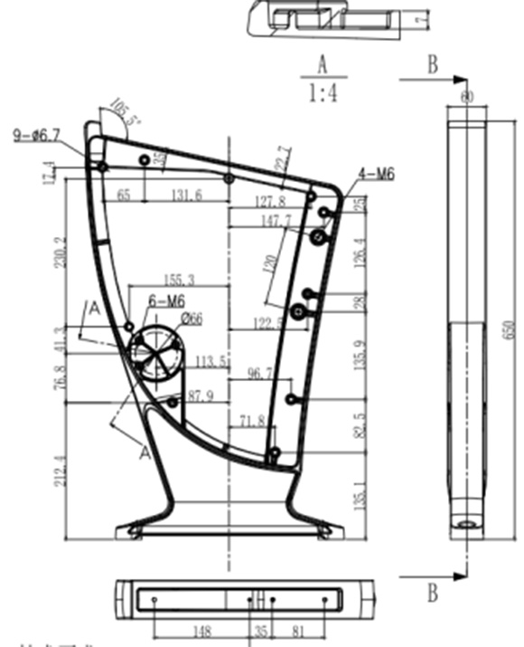 4.扶手和写字板向上倾斜6.5度,需提供站脚小样一个。