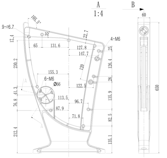 11.座椅站脚采用铝合金模具高温一次性压铸成型,经阴极电泳黑色再镜面精磨抛光,坚固耐用,防锈耐腐蚀。左右两侧配有侧板并面覆麻绒布,美观且防撞。 站脚尺寸为:长度为402±5 mm,宽度为650±5mm,高度为60±5 mm。